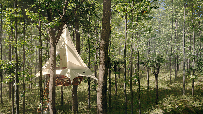 What if the treehouse didn’t require a tree at all so that your customers could turn it into a glamping tent?